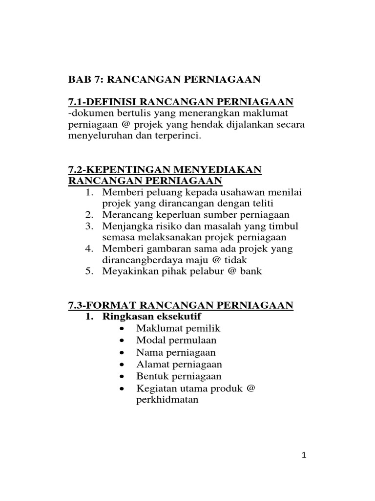 Contoh Senarai Isi Kandungan Rancangan Perniagaan Yang Lengkap Pdf
