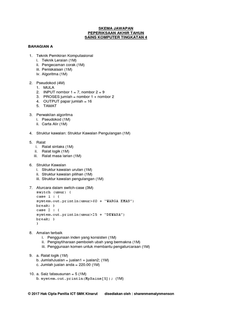 Skema Jawapan Peperiksaan Akhir Tahun Sains Komputer Tingkatan 4 Bahagian A Pdf